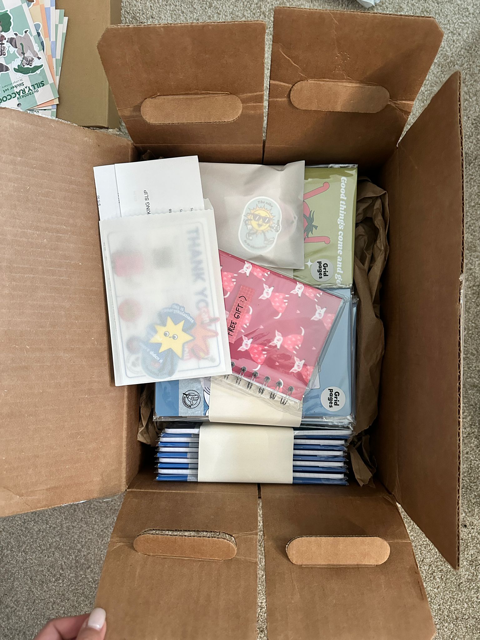 If belly band is not customized, items will ship individually packaged with compostable OPP plastic bag with page indicator sticker on top right only.